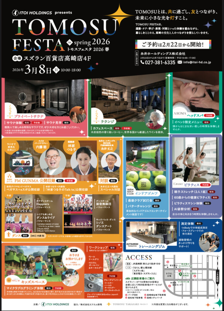 3/8(日) スズラン高崎4Fにて『TOMOSU FESTA(トモスフェスタ)in spring2026』の開催が決定しましたーー😆😆👏👏