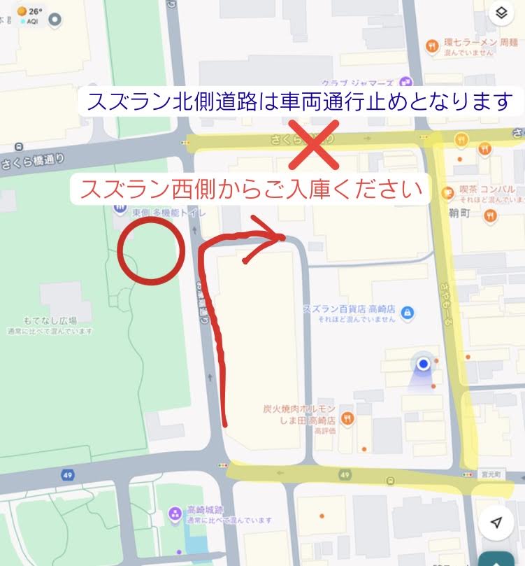 駐車場:スズラン高崎店となりのパーク500をご利用の方は無料